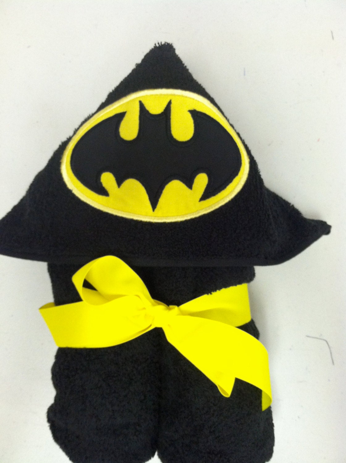 Batman design on hooded towels bath robes and personalised gift embroidered.