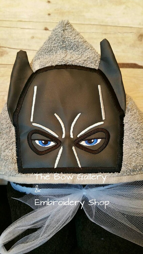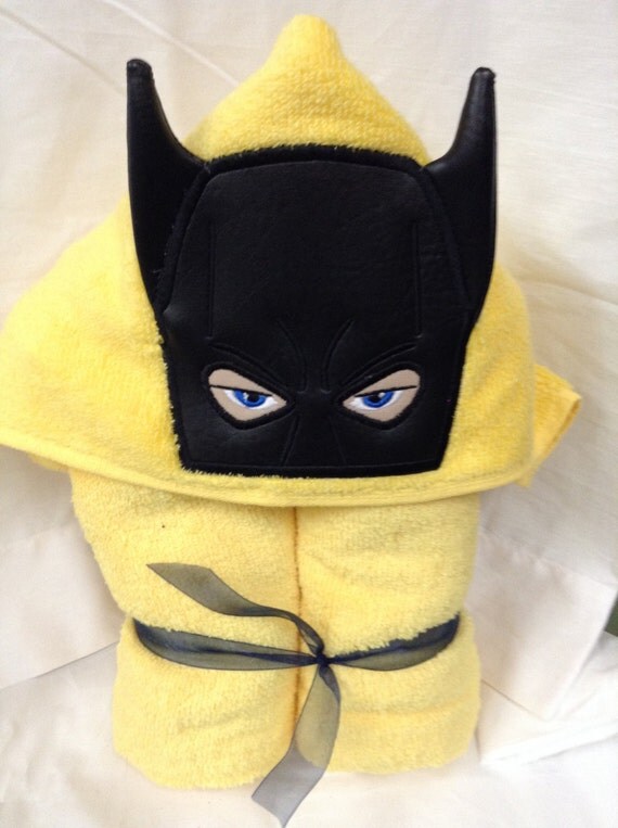 Batman in city beach/pool/bath towel, super soft & absorbent & quick dry, fade resistant cotton towel product description. Batman logo hooded towel by franco manufacturing by warner bros. They can be custom made in the colors and style you like. Made from 2 soft, thick, absorbent bath towels, fleece for eyes and accents, and ribbon (optional). Great savings free delivery / collection on many items.